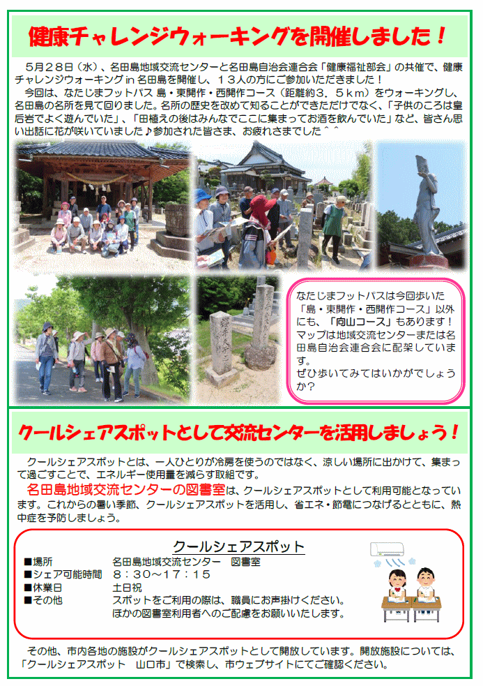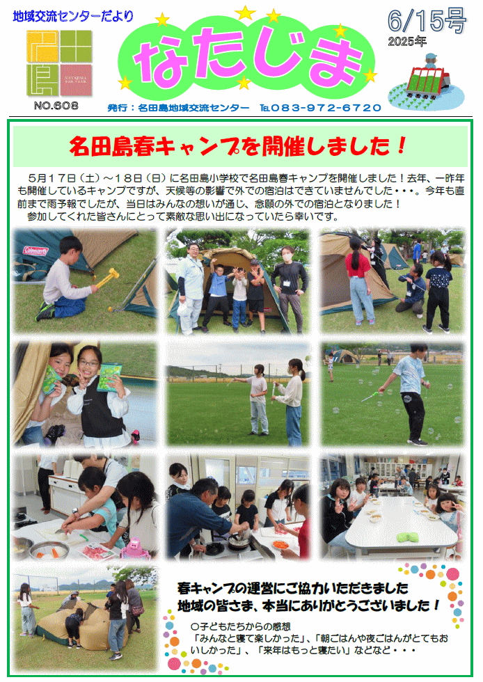 地域交流センターだより なたじま アーカイブはこちらをご覧下さい。