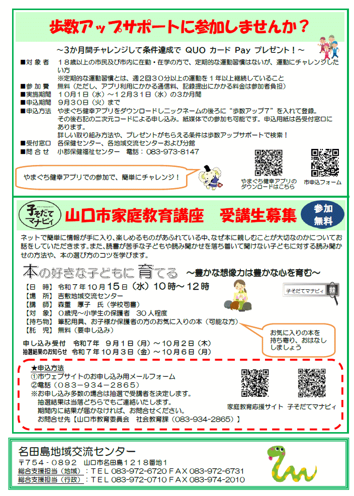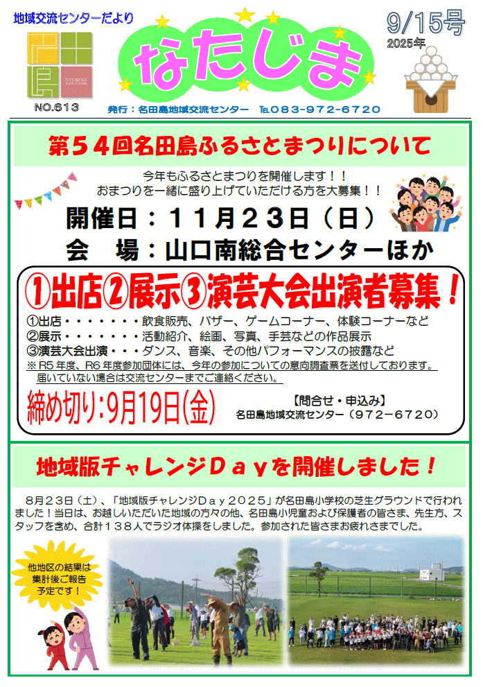 地域交流センターだより なたじま アーカイブはこちらをご覧下さい。