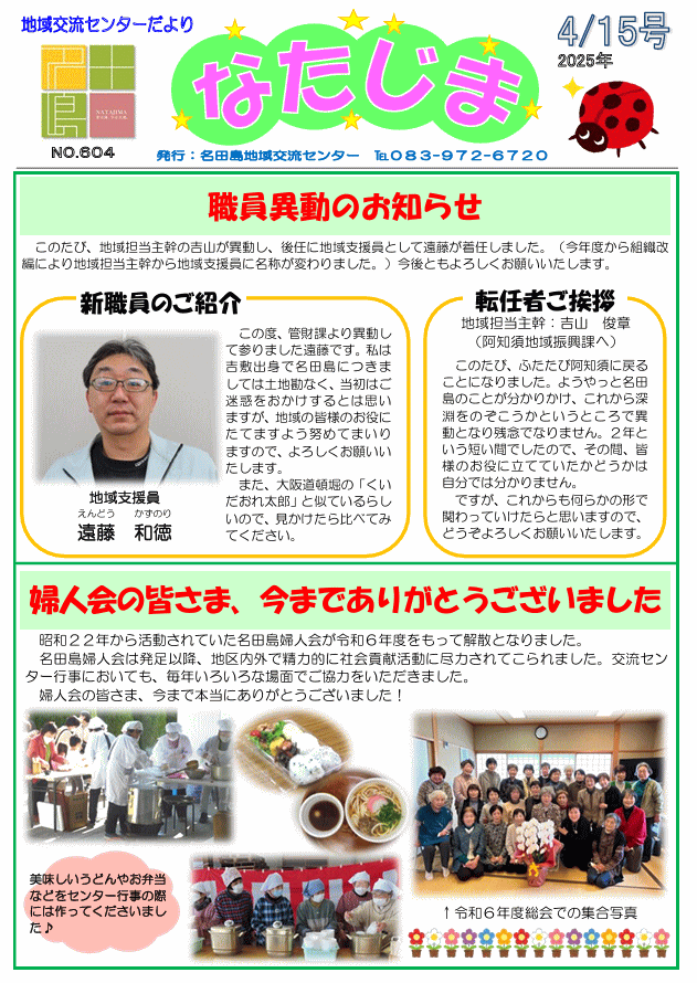 地域交流センターだより なたじま アーカイブはこちらをご覧下さい。