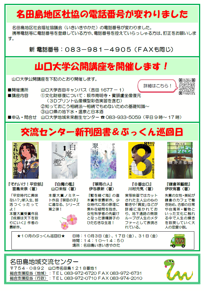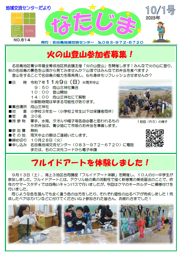 地域交流センターだより なたじま アーカイブはこちらをご覧下さい。