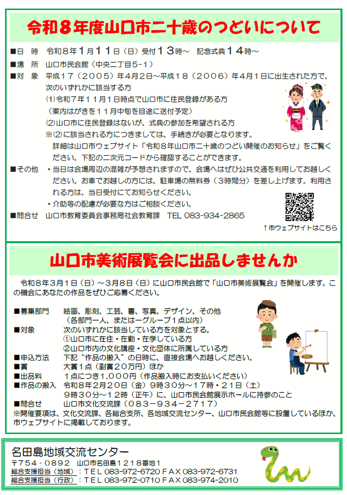 地域交流センターだより なたじま アーカイブはこちらをご覧下さい。