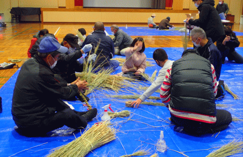 R4.12.26(月)13:30からJA川東支所名田島地区年金友の会と自治会連合会生涯学習部会の共催でしめ縄作り体験会が名田島小学校の体育館で開催されました。地域の方のご指導により子ども達も頑張っていました。子ども達の作品は、お正月には玄関先をを飾ることでしょう。小学校の低学年から参加している子どもさんは、手早く多くの作品を作成していました。将来的には、指導者になって下さると良いですね。楽しみです。