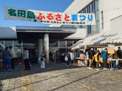 | 2025年11月23日 名田島ふるさとまつり 開催 飲食出店、作品展示、ゲーム・体験コーナー、演芸大会、福引き、ビンゴ大会、もちまきと盛りだくさんで開催されました。