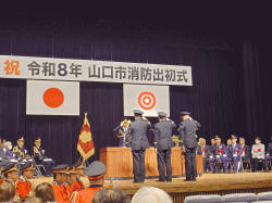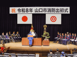 | 2026年1月11日 「山口市消防出初式」開催 新年恒例の消防の出初式が山口南総合センターで開催されました。 式典のほかにまとい隊演技、消防音楽隊演奏、山口高校書道部のパフォーマンス、女性防火クラブによる炊きだしなどのイベントをありました。