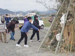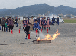 主催:名田島地区青少年健全育成地区民会議、名田島婦人防火クラブ 三世代交流新春行事(どんど焼き)がJA山口県南営農センターで行われました。“どんど焼き”は、正月が終わる小正月の15日の前後に、門松や、しめ飾りを焼いて、炎とともに神様を見送る伝統行事です。多くの地域の方がしめ縄や門松などの正月飾りを持ち寄り、竹と一緒に燃やし、1年の無病息災を祈りました。山口市消防署員による消火講習会もあり、子供たちをはじめ参加者が熱心に聞き入っていました。